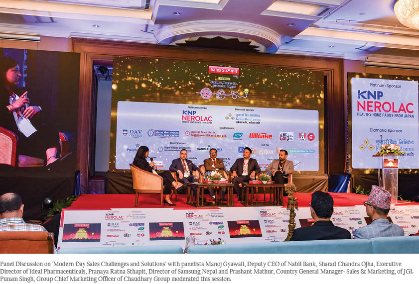 The session had Manoj Gyawali, Deputy CEO of Nabil Bank Limited, Sharad Chandra Ojha, Executive Director of Ideal Pharmaceuticals, Prashant Kumar Mathur, Country General Manager, Sales and Marketing of JGI, and Pranaya Ratna Sthapit, Director of Samsung Nepal as panelists and Punam Singh, Group Chief Marketing Officer of Chaudhary Group as the moderator.